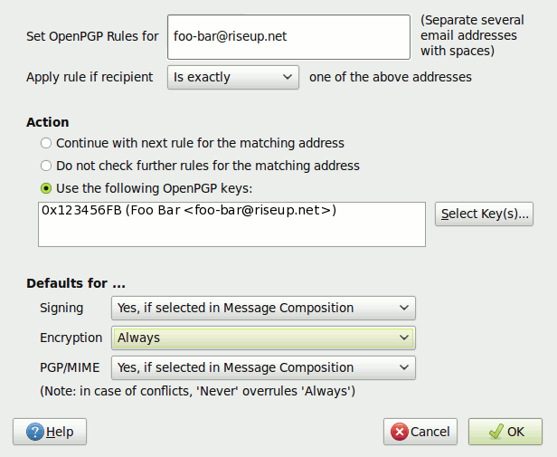 - Navigate to OpenPGP → Edit Per-Recipient Rules
